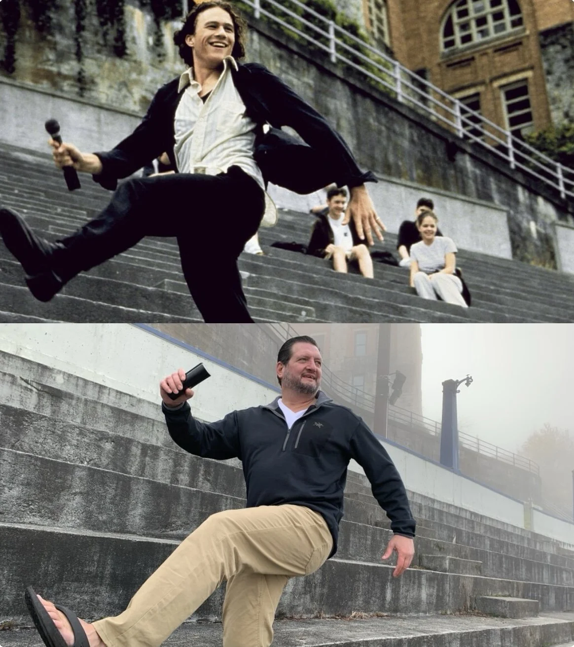 Scene: Many pivotal scenes in the film were shot at the historic Stadium High School, including the most famous scene where Patrick (Heath Ledger) serenades Kat (Julia Stiles) with "Can't Take My Eyes Off You."