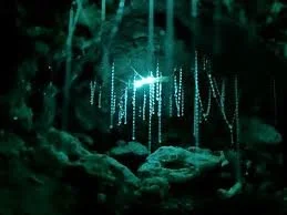 The glowworm is the name for the bioluminescent larvae of various species. The larvae of the beetle fireflies (Lampyridae), beetle larvae (Phengodidae), and of Arachnocampa, a type of fungus gnat all bioluminescence. It is these fungus gnats that can be found in massive numbers in Waitomo caves. The fungus gnat larvae cling to rock walls and hunt with long strings of sticky mucus.