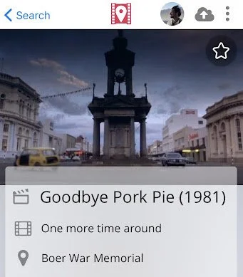 Finally arriving in Invercargill, John (Tony Barry) makes a lap of the traffic circle around the Boer War Memorial as he tries to slip the police on his final sprint to reunite with Sue (Shirley Gruar) - minus a few parts of the Mini he needed to sell along the way.